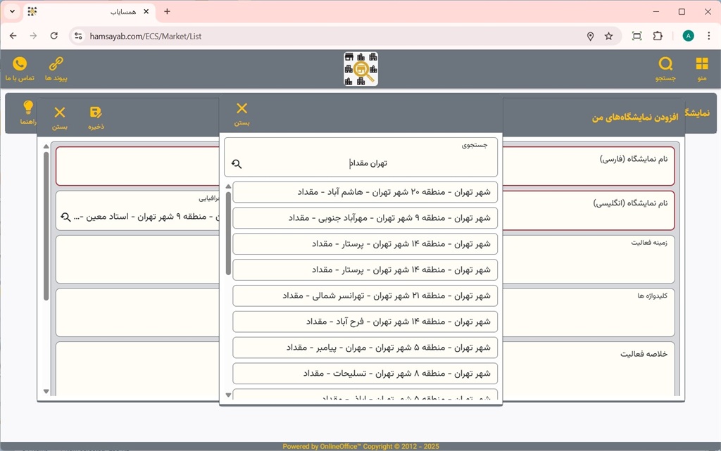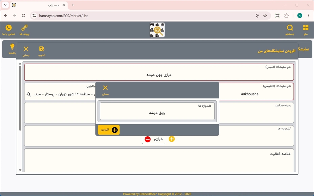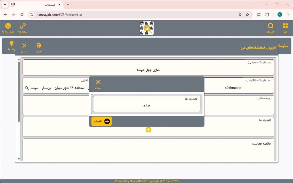 مدیریت نمایشگاه‌های من در سایت همسایاب