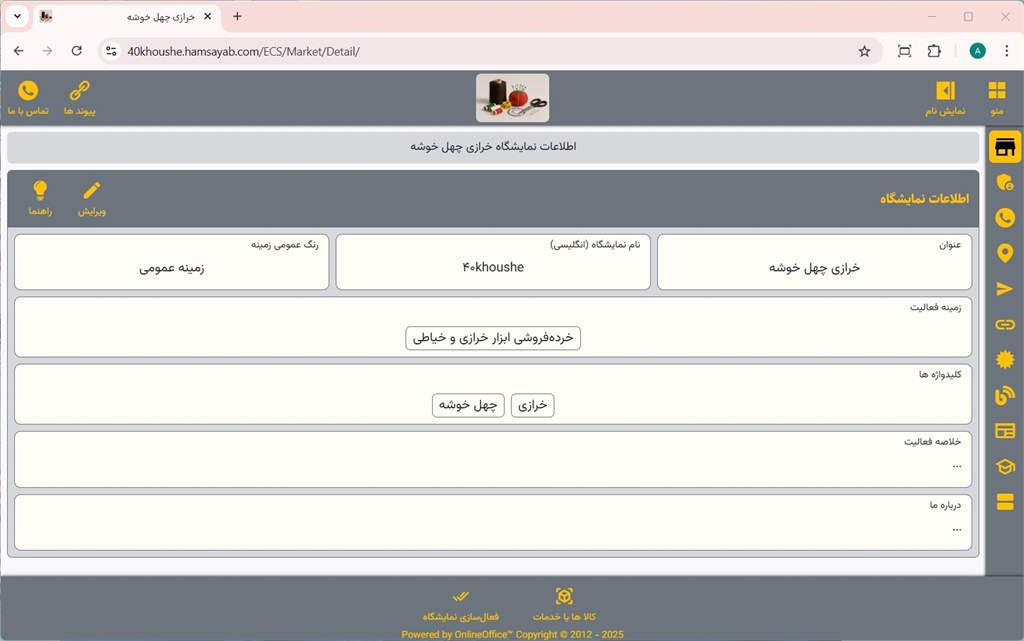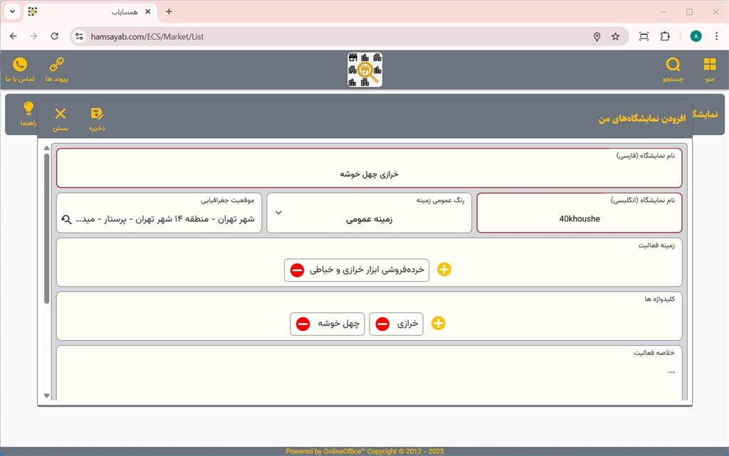 برای فعال‌سازی نمایشگاه بر روی دکمه فعال‌سازی نمایشگاه در پایین صفحه کلیک نمایید.