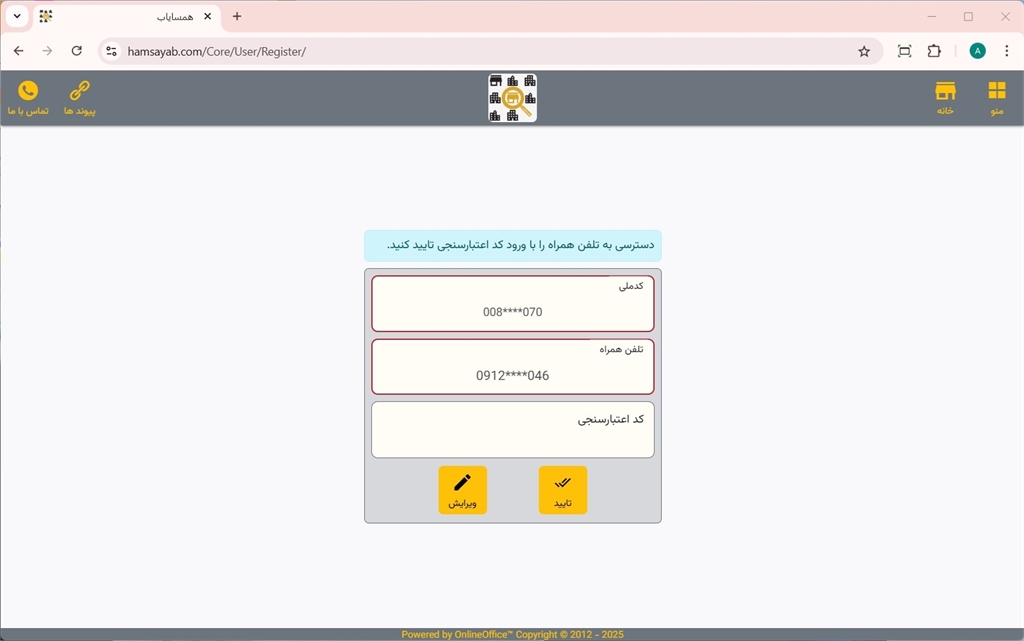ثبت نام در سایت همسایاب