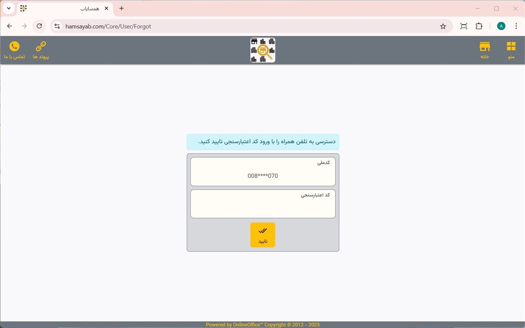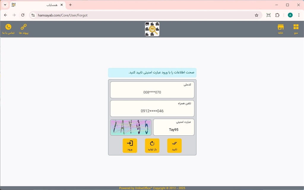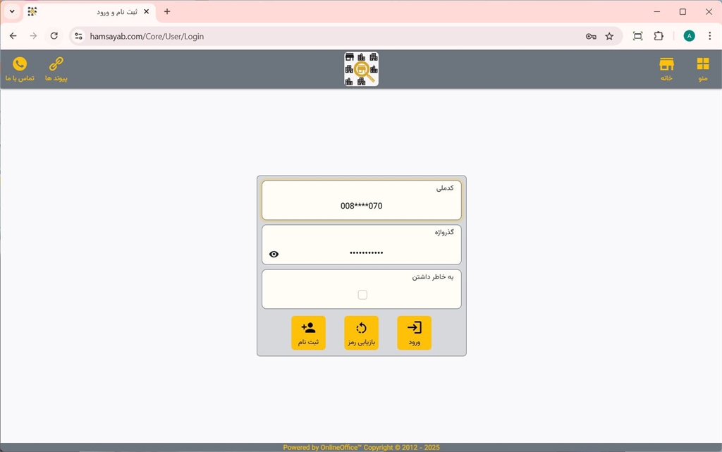 با استفاده از کدملی و گذرواژه وارد سایت همسایاب شوید.